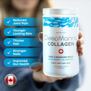 By calming the immune system and nourishing the tissues of your joints, skin, gut, hair follicles and nail beds DeepMarine Collagen works from the inside out to produce Pain-Free Joints, Glowing Skin, Thicker Hair, Stronger Nails and a Healthy Gut.